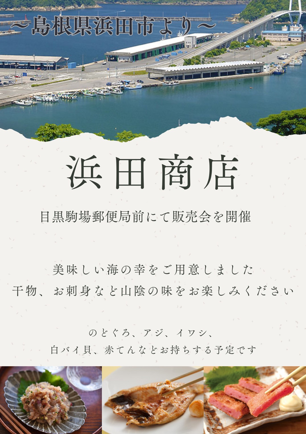 いわし一夜干し、あじ一夜干し、真フグたたき、宍道湖しじみ、ヒラマサなめろう、赤てん などが販売される予定だそうです!(変動する場合もあります。ご了承ください)