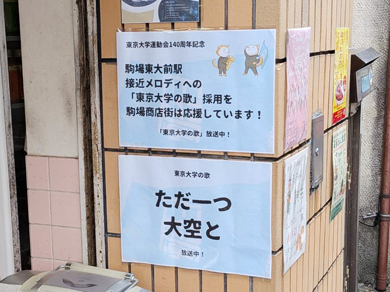 明大前駅では明大校歌が流れているのに、駒場東大前駅で流れていないのは寂しいと感じていました。